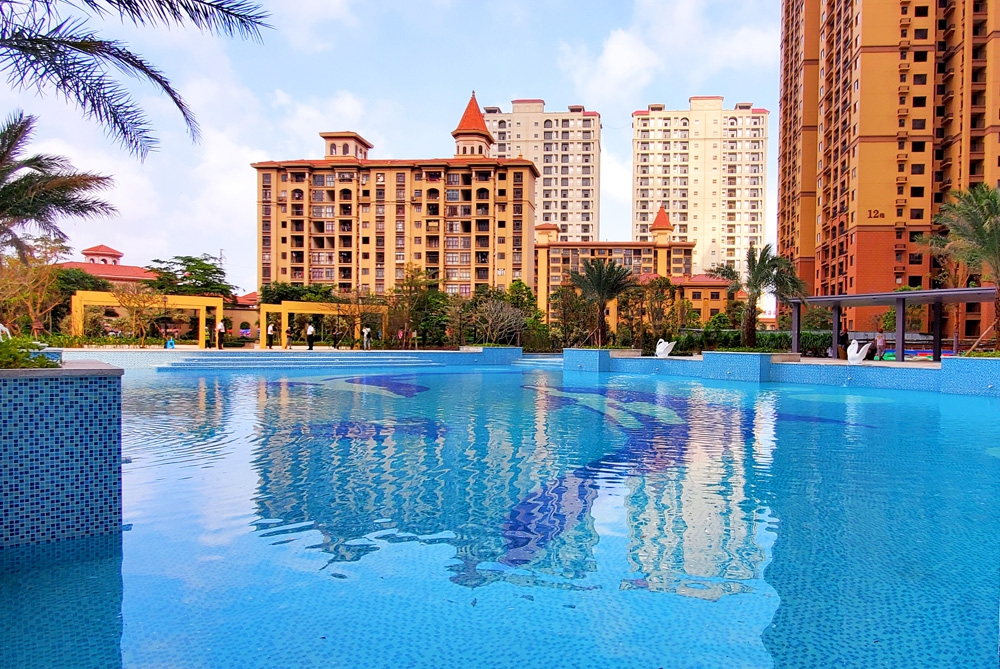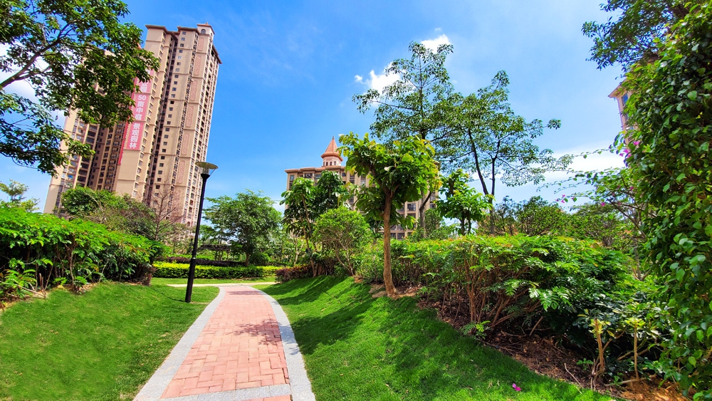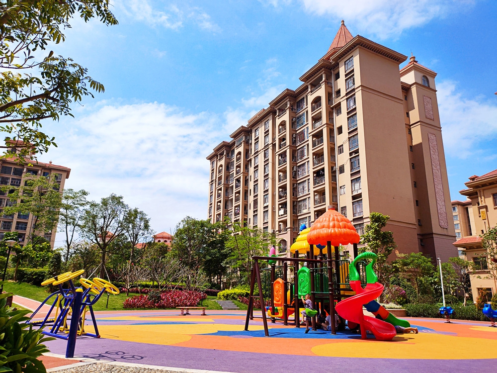 小区配套50亩集中园林、游泳池、鲜氧步道、彩虹屋顶跑道、分龄儿童乐园、架空层、阳光地下车库