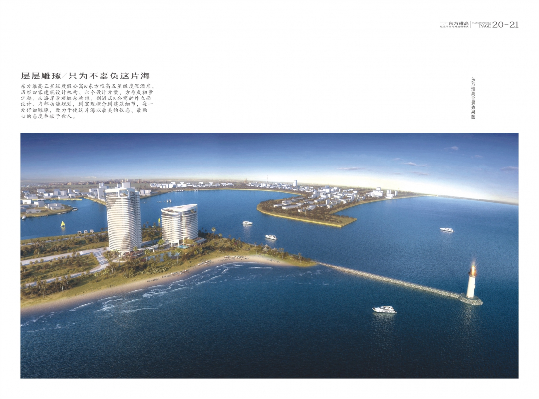 项目总用地面积12856.22㎡,总建筑面积约为76941.0㎡。地上建筑占地面积64276.9㎡,绿地率31%。其中:公寓地上建筑面积为35188.9㎡,五星级度假酒店地上建筑面积为28915.96㎡,地下室总建筑面积合计为12664.12㎡。项目包含了210酒店客房和594套度假公寓。