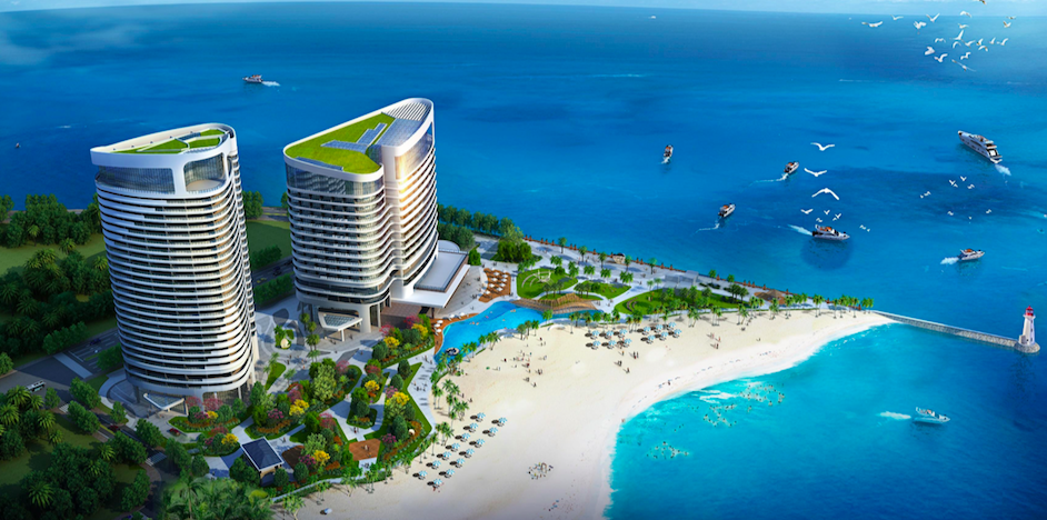 北海侨港项目酒店坐落于风景秀丽的滨海城市——广西北海,位于北海市侨港镇美景路南侧,电建渔港出海口西侧,鸿华别墅区东侧,项目三面环海。项目由一栋25层的公寓和一栋16层的五星级度假酒店组成。